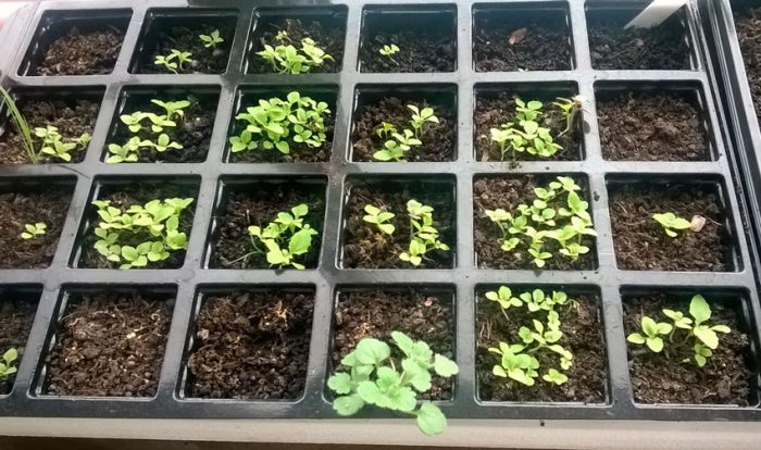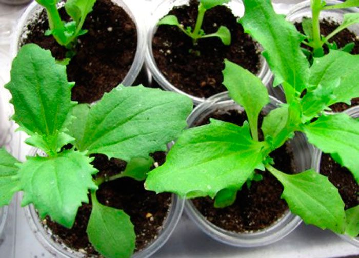 Після того як здасться більша частина сіянців, рослинки можуть почати витягуватися. Щоб цьому запобігти, необхідно переставити ємність в максимально освітлене і більш прохолодне (від 10 до 12 градусів) місце. Поливати розсаду необхідно щодоби і роблять це у другій половині дня. Також розсаду рекомендується регулярно обприскувати з дрібнодисперсного пульверизатора. Після того як у рослинок почне формуватися четвертий справжній листочок, їх потрібно буде знижуватись в індивідуальні стаканчики. При цьому в кожен стаканчик слід висаджувати по 3 або 4 рослинки. Коли сіянці приживуться на новому місці, їх потрібно буде підгодувати, для цього використовують калійне добриво слабкої концентрації. Другий раз рослини підгодовують через 1-1,5 тижня.