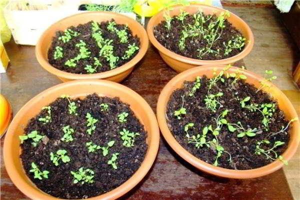 Коли сходи почнуть з'являтися масово, укриття прибирає, а ємність треба буде переставити на місце з яскравим, але при цьому розсіяним освітленням, на даному етапі растеньицам потрібна прохолода від 8 до 10 градусів. Якщо все зробити правильно, то вдасться уникнути витягування розсади. Через 7 днів з моменту появи сіянців, їх потрібно підгодувати, полив слабким розчином комплексного добрива. Регулярно поливайте рослинки і не забувайте час від часу акуратно рихлити поверхню субстрату. Через 20-30 днів з моменту посіву, коли у рослин почнеться формуватися 2 або 3 справжній листок, треба буде провести їх пікіровку за індивідуальними горщикам або стаканчики, при цьому розсаду переставляють в місце з температурою повітря до 13 градусів. Грунтосуміш в стаканчиках не повинна пересихати. Загартування розсади починають за півмісяця до пересадки її у відкритий грунт.
