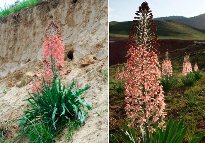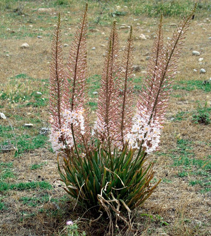 Цей вид вважається одним з найбільш поширених. У природі його можна зустріти від Південно-Західного Паміру-Алая до Західного Тянь-Шаню, а ще ця квітка можна побачити в Пакистані, в північній частині Афганістану і в північно-західних районах Ірану. Висота куща може доходити до 1,5 м. Коріння несильно веретеновидной-потовщені, вони мають практично циліндричну форму, а на їх поверхні, часто є опушення, забарвлення темно-сірий. На одному кущі може виростати до 65 кілеваті темно-зелених узколинейных листових пластин, на їх поверхні є сизий наліт, вони шорсткі по краях. Забарвлення стебла темно-зелений, на його поверхні є наліт сизого кольору, у висоту досягає не більше 100 сантиметрів. На ньому розміщується кистевидное суцвіття конічної або циліндричної форми довжина якого може доходити до 0,6 метрів, а діаметр — до 15 сантиметрів. Діаметр широкооткрытых квіток дорівнює 35 мм, забарвлення їх околоцветников блідо-рожевий або рожевий, біля основи розташовується жовту цятку, а також у них є темно-червона жилка. Зустрічаються квітки з околоцветниками білого кольору з зеленою жилкою. Час цвітіння залежить від клімату в регіоні, де вирощується рослина, і може спостерігатися в травні–серпні. Культивується з 1881 р.