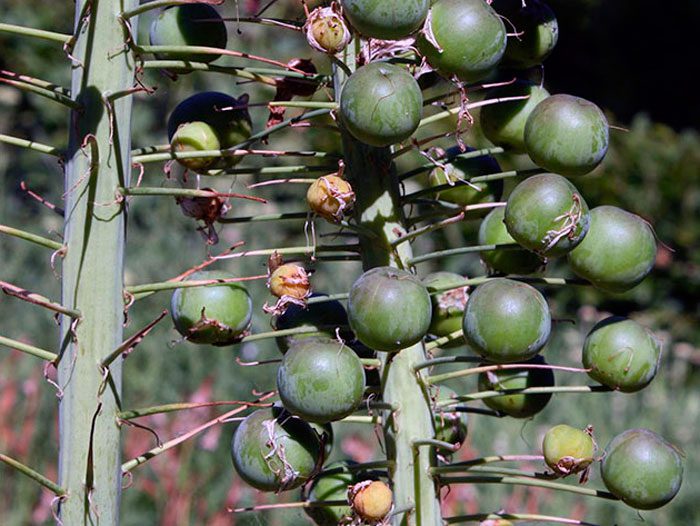 Хороші насіння можна зібрати лише з нижньої частини суцвіття-свічки. У зв'язку з цим рекомендується вибрати 2 суцвіття і скоротити їх зверху на 1/3 частину. Під час дозрівання плоди пофарбовані в бежевий колір. Збір насіння слід почати з другої половини серпня. Обрізане секатором суцвіття треба помістити на дозаривание у добре вентильований і сухе приміщення. В останні дні жовтня, добре просохлі коробочки слід розтерти руками над газетним аркушем, на який і высыплются насіння. Їх продувають і висівають.