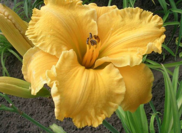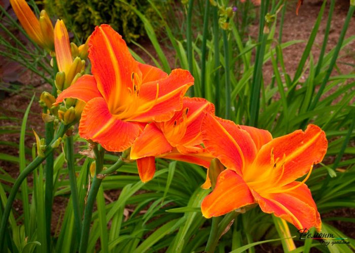 в) Листопадний лілейник Стелла до Оро. Гофровані квіточки лійкоподібної форми, вони запашні і пофарбовані в темно-жовтий колір, в діаметрі досягають 7 сантиметрів. Пишне цвітіння, і його можна спостерігати протягом усього літнього періоду. Даний сорт отримав велику кількість нагород американського товариства любителів лілейників. Його можна культивувати і в саду і як бордюрна рослина, а також ростити в домашніх умовах.