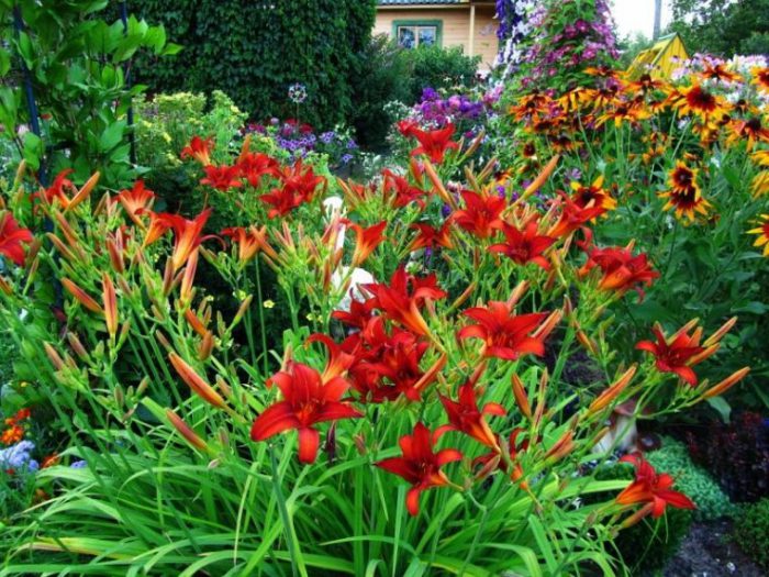 При посадці слід врахувати, що в кінці літнього періоду рослини втрачають свою декоративність. У зв'язку з цим треба заздалегідь передбачити, з якими квітами поруч їх висадити, для того щоб вони змогли відвернути увагу від желтеющего і увядающего лілійнику. Фахівці для цього пропонують використовувати физостегию, вербейник точковий, декоративні злаки і деревію різноманітних кольорів.
