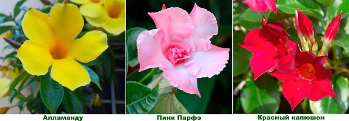 Найбільшою популярністю з усіх сортів мандевиллы користуються наступні: