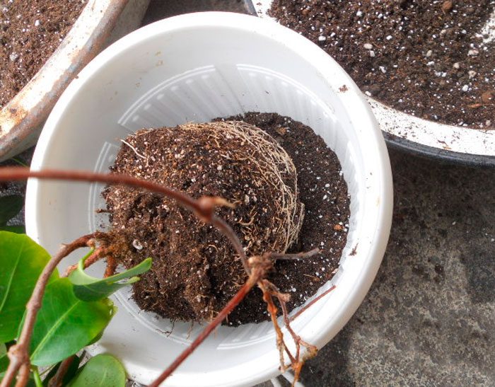 - Пересадка. При необхідності після того, як кореневій системі кущика стане дуже тісно в квітковому горщику. Дорослі кущі не пересаджують, замість цього у них регулярно замінюють верхній шар грунтосуміші в горщику.
