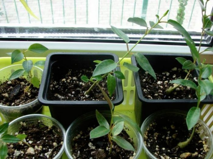 Перших сходів доведеться чекати дуже довго, приблизно 2-4 місяці, причому на протязі всього цього часу вам потрібно буде систематично поливати посіви, а також прибирати конденсат з поверхні укриття. Після того як з'явилися сіянців сформується по 2 справжніх листової пластини, проводять їх пікіровку за індивідуальними стаканчики, які мають на дні отвори для дренажу, причому субстрат використовують той же, що і для посіву. Через деякий час, коли кущики підростуть, їх пересаджують в постійні ємності.