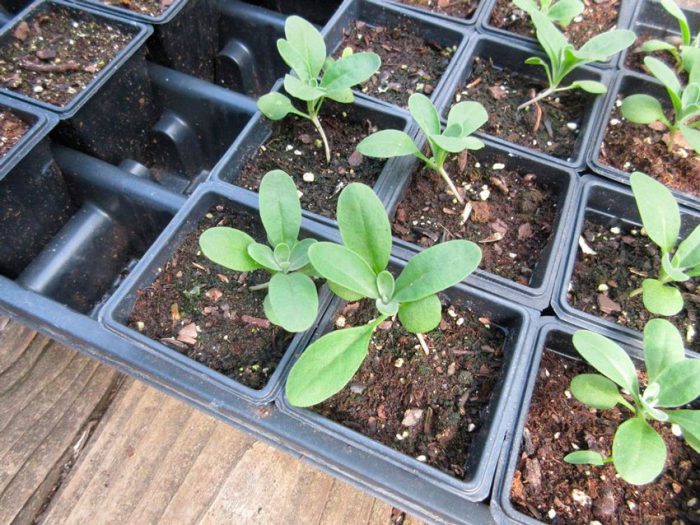 Після того як з'являться перші сіянці, укриття потрібно прибрати, а ємність переставити в добре освітлене місце з розсіяним світлом, це не дозволить растеньицам витягуватися. Необхідна температура для вирощування розсади — від 10 до 12 градусів, тому контейнери рекомендується перенести на необігріваєму веранду або захищений балкон. Через дві доби після того, як з'являться перші сіянці, їх потрібно буде вперше полити. Через 10-12 діб сіянці слід пікірувати за індивідуальними горщиках, які мають отвори для дренажу. Їх слід заповнити землесумішшю, що складається з дернової і листової землі і піску, які треба взяти у співвідношенні 2:2:1. При цьому треба врахувати, що до цього часу у рослинок ще не з'явиться жодної справжньої листової пластини. Під час пікірування розсади в субстрат рекомендується всипати невелику кількість гідрогелю, що дозволить зміцнити систему коренів рослинок. Пізні, а також среднецветущие сорту при бажанні можна пікірувати безпосередньо у відкритий грунт. Першу підгодівлю слід зробити, коли у рослин почне розвиватися друга справжня листова пластина. Для підгодівлі слід використовувати мікродобрива, для цього на 1 л води береться по 0,3 грама борної кислоти і мідного купоросу і по 0,1 г сірчанокислого марганцю і сірчанокислого цинку. Розсаду такого рослини потрібно обов'язково гартувати. Для цього спочатку відкривають кватирку на балконі на нетривалий час, при цьому час процедури поступово збільшують. Під кінець квіти потрібно утримувати при повністю відкритому вікні. Починати гартувати сіянці слід за 1-1,5 тижні до висадки у відкритий грунт.