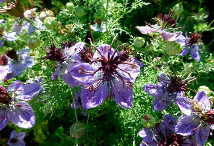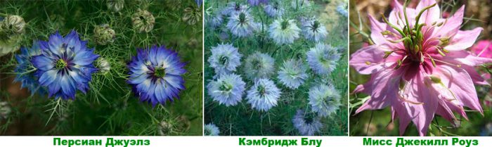 У садівників середніх широт даний вид, ще іменований «дама в зелені», що користується найбільшою популярністю. Справа в тому, що у такого рослини красиві не тільки квітки, але й листові пластини. У природних умовах такі квіти можна зустріти в Передній і Малій Азії, в Криму, на Кавказі і в Середземномор'ї. Висота гіллястих пагонів може доходити до 0,3–0,5 метрів. Листові пластини тричі або двічі перисто-розсічені. Забарвлення махрових або простих квіточок може бути блакитним, білим або синім. Квітки наче оточені ефектним «покривалом», що складається з ажурних листочків, розташованих на пагонах безпосередньо під квіточками. Є велика кількість сортів цього виду нігелли, проте слід пам'ятати, що не всі вони відзначаються високою декоративністю. Наприклад, сорт Бебі Блу більше схожий на зелений грудку, у висоту досягає 15 сантиметрів і володіє крихітними квітками і некрасивими рогатими плодами. До найбільш декоративним сортів відносяться: