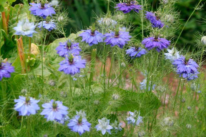- Кембридж Блу. Ніжні стебла у висоту можуть досягати 0,9 м, забарвлення напівмахрових квіточок блакитний.