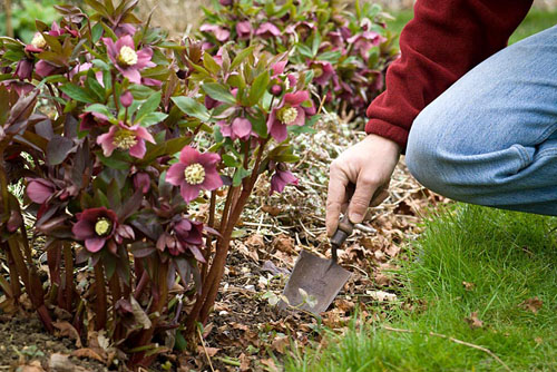 Доглядати за таким квіткою досить просто. Перш ніж морозник зацвіте у весняний час, треба обірвати всі старі листові пластини. Це потрібно для того, щоб рослина не заразилася грибкової плямистістю. Молоденькі листочки виростають після того, як рослина перестане цвісти. Після того як квіти зів'януть, треба буде грунт навколо рослин присипати шаром мульчі (компостом або розкладатися торфом). Якщо стоїть спекотна погода, то морозник треба систематично поливати, а ще своєчасно видаляти бур'яни і рихлити поверхню грунту. Ще його потрібно 2 рази за сезон підгодувати мінеральним добривом і кісткової борошном.