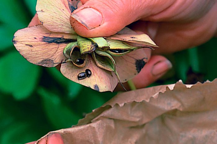 Дозрівання насіння починається в червні і може продовжуватися весь літній період. Слід врахувати, що в один момент коробочка може несподівано лопнути, і насіння высыплются на ділянку. Для того щоб це запобігти, на кілька штук ще несозревшіх коробочок слід надіти мішечки з марлі. Потім залишиться тільки почекати, поки дозрілі насіння самі высыплются в цей мішечок. Потім їх треба буде досушити, помістивши для цього в сухе добре вентильоване приміщення. Після їх поміщають в пакет з паперу. Але зберігати такі насіння не рекомендується, так як вони дуже швидко втрачають схожість, у зв'язку з цим краще всього висіяти безпосередньо після збору.