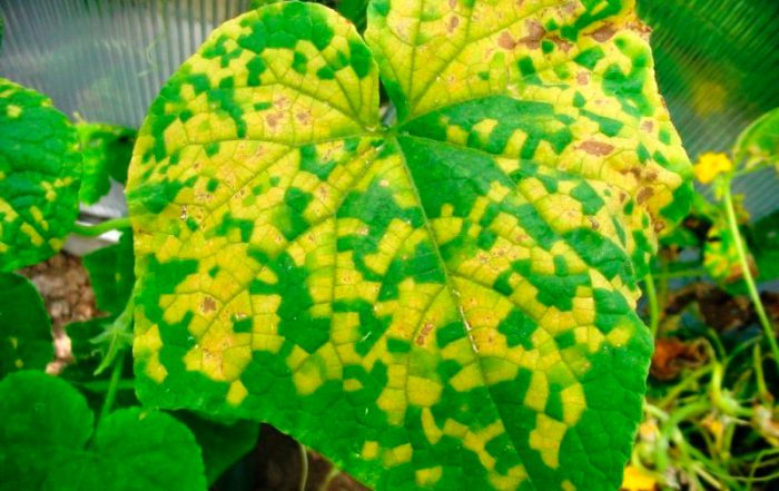 У зараженого кущика починають жовтіти листові пластини, вони поступово засихають і обпадають. Відбувається також викривлення квітконосів і деформування квіток, при цьому спостерігається зміна їх забарвлення.