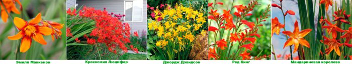 Селекційні роботи над крокосмией ведуться постійно. Так, вже було створено більше 400 культиварів. Найбільш популярними з них є: