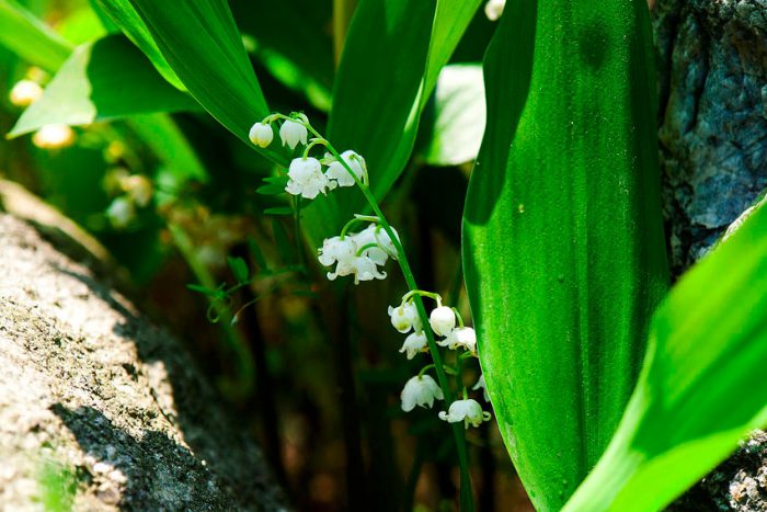 Конвалії є тенелюбивыми рослинами, і вони занесені в Червону книгу. Дуже ефектними є не тільки білосніжні квітки, але також і темно-зелені достатньо широкі листочки. Даний квітка рекомендується висаджувати поруч з медуницею, ветреницами, папоротями і аквилегией. Конвалії відрізняються стрімким розростанням, і вони здатні витіснити інші рослини з ділянки. Цим же вони виділяються і в збірних букетах, справа в тому, що будь-які інші квітки в сусідстві з конваліями стрімко в'януть. Пам'ятайте, отрута знаходиться у всіх частинах конвалії, тому працювати з ним слід дуже акуратно.