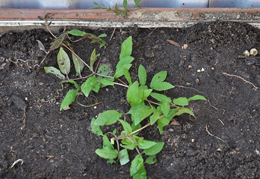 Коли сіянці трохи підростуть, і у них з'явиться 2 справжніх листової пластини, їх слід пікірувати разом з грудкою землі в ємності, які повинні мати обсяг близько трьох літрів. Це дозволить сформуватися міцної кореневої системи і отримати потужні стебла. Під час пересадки не забудьте в ємності поставити спеціальні драбинки з металу або пластмаси, в цьому випадку сіянець буде рости, використовуючи її в якості опори. У цей же самий час слід почати проводити загартовування розсади. Для цього рослинки переносять на лоджію або балкон, який повинен бути утеплений або на крайній випадок засклений. Тут рослинки і будуть перебувати до пересадки, при цьому потроху звикаючи до холодного повітря. Як правило, достатньо буває тритижневого загартовування, щоб рослини повністю звикли до вуличного клімату. Потім можна буде приступити до висадки підросла і зміцніла розсади у відкритий грунт.