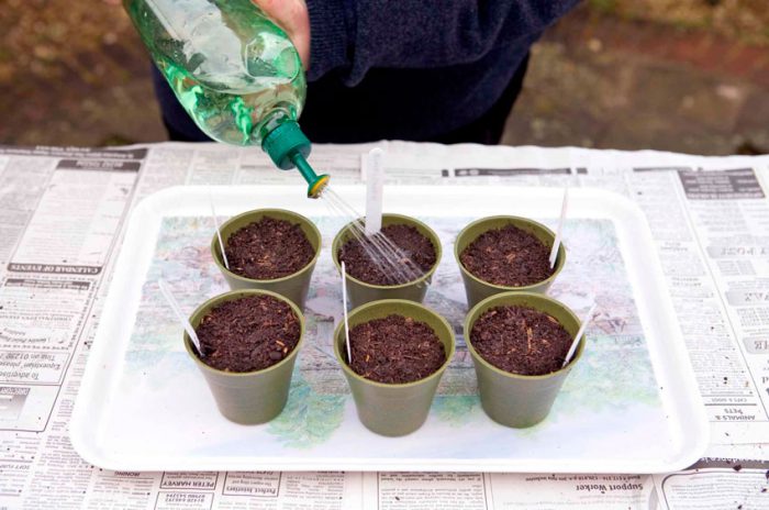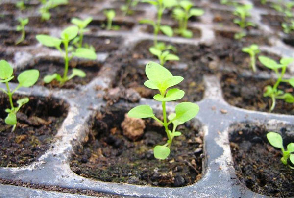 Висів на розсаду необхідно виробляти в останні дні березня або в перші — квітня. Попередньо на дно контейнерів необхідно укласти дренажний шар і заповнити їх пухкої грунтом, насиченою поживними речовинами. Дрібні насіння для зручності рекомендується з'єднати з піском. Після цього їх розподіляють по поверхні субстрату, а зверху присипають тоненьким шаром грунту. Ємність потрібно накрити прозорою плівкою. Щодня необхідно прибирати плівку з ємності на деякий час, для того щоб провітрити і полити посіви. Приблизно через 1,5 тижні можна буде побачити перші сіянці. Після того як це станеться, потрібно прибрати укриття назовсім. Пікіровку проводять після того як у рослинок з'явиться пара справжніх листочків. Сіянці акуратно викопують, обережно видаляють грунт, підрізають надмірно довгі корінці. В 1 горщик висаджується по 3 сіянця.