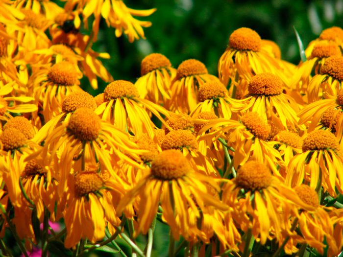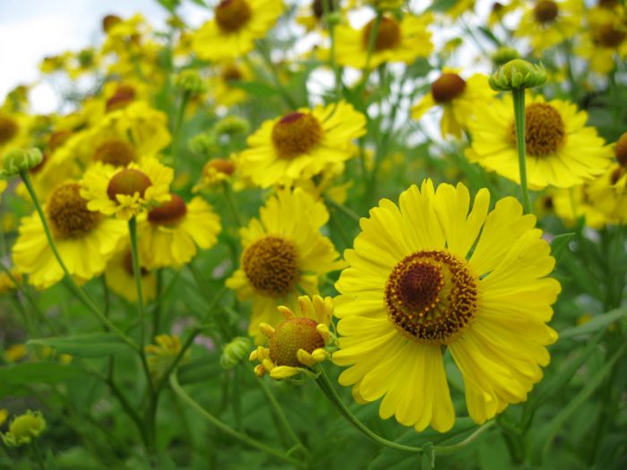 Геленіум (Helenium) є однорічним або багаторічним рослиною сімейства складноцвіті. Цей рід об'єднує близько 32 видів. У природних умовах їх можна зустріти в Північній і Центральній Америці, і велика їх частина виростає на Заході Сполучених Штатів. Вважається, що ця рослина було названо гелениумом в честь дружини царя Менелая, чарівної Олени, яка стала причиною, вибуху війни між Троєю й Грецією. Вона була описана в «Іліаді» Гомером. Чому ж виділяються такі рослини. Справа в тому, що до певного часу вони відрізняються зовсім непримітним зовнішнім виглядом. У кінці літнього періоду, коли багато рослин вже відцвітають, гелениум постає у всій своїй красі. Його суцвіття-кошики золотистого забарвлення, які можуть змінювати своє забарвлення, виглядають дуже нарядно і наповнюють сад своєї «спокійною» красою...