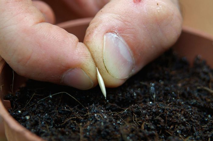 Висів насіння в осінній час можна провести безпосередньо у відкритий грунт. Також їх можна висіяти на розсаду в лютому або березні, але при цьому слід врахувати, що таким посівам знадобиться стратифікація. Так, насіння розподіляють по поверхні субстрату, після чого ємність поміщають в пакет з поліетилену. Після цього даний контейнер прибирають на полицю холодильника на 4-6 тижнів. Після цього ємність з насінням виймають і поміщають в тепло під штучне освітлення. Оптимальна температура для появи сіянців від 18 до 22 градусів. Після того як у рослинок з'явиться 2 або 3 справжніх листочка, слід провести їх пікіровку.