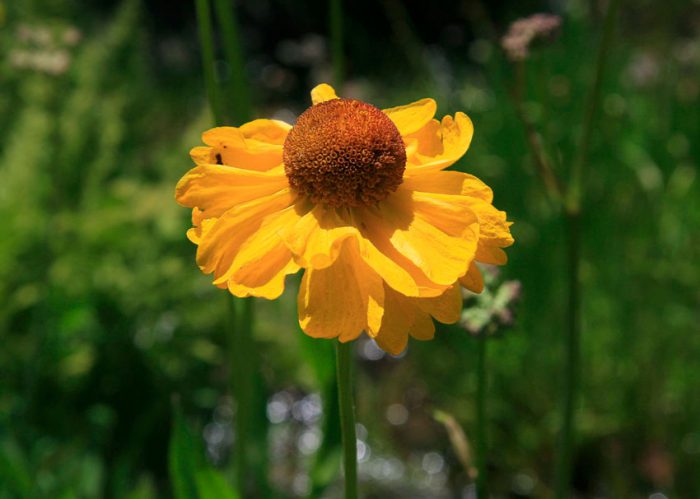 Цей вид отримав в культурі найменше поширення .Родом він із Заходу Північної Америки. Висота прямих пагонів дорівнює близько 0,8 м. Цілісні листові пластини мають ланцетної форми. Діаметр кошиків близько 6 сантиметрів, серединні (трубчасті) квіточки мають коричневе забарвлення, а язичкові — пофарбовані в жовтий колір. Цвітіння спостерігається в червні і липні.