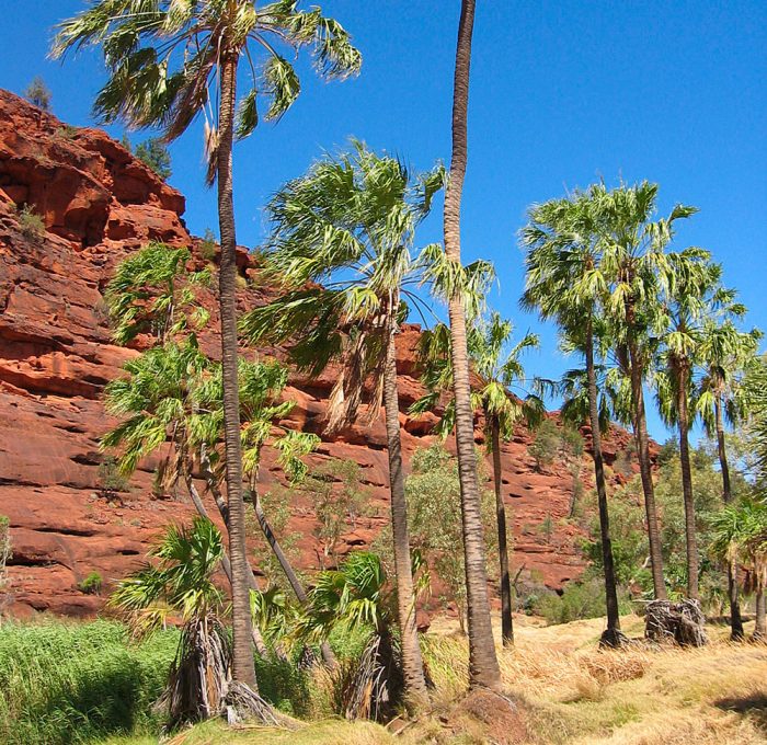 Цей видом родом з вологих субтропічних лісів східної частини Австралії. Висота колоновидного стовбура у цієї пальми близько 25 метрів, при цьому в діаметрі він досягає до 0,4 м. Біля основи стовбур потовщений і його поверхню покривають рубці, а також залишки листкових піхв пластин. Складчасті радіально віялові листя розділені на маленькі частки з двунадрезными кінцями. Ці глянцеві темно-зелені листові пластини мають довгі (близько 200 см) черешки, по краях у яких густо розташовані гострі шипи, пофарбовані в практично коричневий колір. Довжина пазушного розгалуженого суцвіття близько 1,3 м.