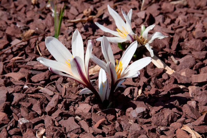 - Осінній білий — дану форму в природних умовах можна зустріти нечасто. На одній цибулині з половини вересня з'являються 5-7 квіточок, довжина яких не більше 15 сантиметрів. Їх центр жовтий, а оцвітина — білосніжний.