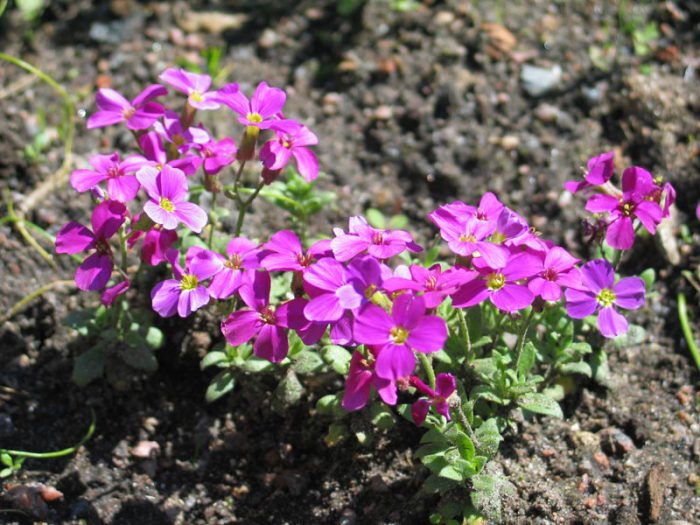 Після того як в весняне час аубреция відцвіте, її треба обрізати практично до рівня поверхні грунту. В даному випадку почнеться активне зростання молоденьких стебел з листочками насиченого забарвлення. На тлі обрієти просто чудово будуть виглядати інші квітучі рослини. Через якийсь час вона зацвіте повторно.