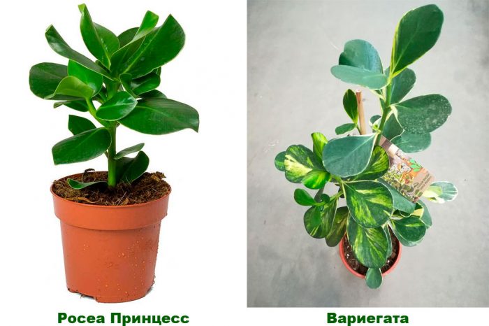 - Росеа Принцес ― великі квітки мають рожевим забарвленням, а листя ― зеленим;