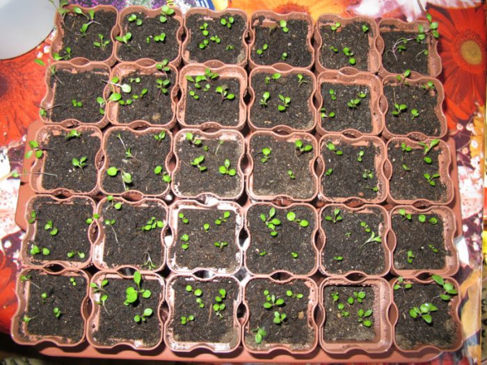 Перші сіянці, як правило, з'являються через 1-1,5 тижня. Після цього контейнер треба перенести в місце з гарним освітленням. Пікіровку в індивідуальні горщики проводять після того, як у рослинок утворюється за 2 справжніх листочка. Під час пікіровки рослинка треба акуратно вийняти разом з земляним грудочкою. В якості ємності рекомендується використовувати торфоперегнійні брикети, в результаті під час висадки у відкритий грунт проблем буде в кілька разів менше. При правильному догляді за розсадою в сад ви будете пересаджувати потужні молоді рослинки.
