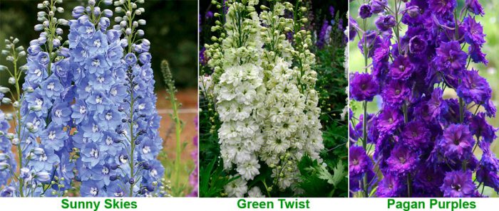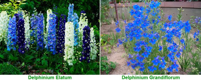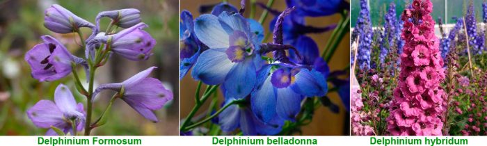 Розрізняють дельфініуми однолітні і багаторічні. Найбільшою популярністю користуються такі однорічні рослини, як дельфініум Аякса і дельфініум польовий.