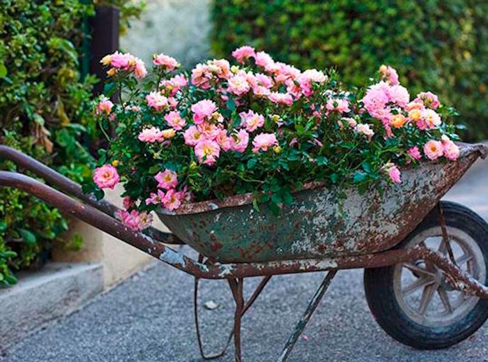 У тому випадку, коли роза, призначена для посадки в саду, зростає в контейнері, в ямку слід насипати не дуже велика кількість землі, змішаної з компостом. У контейнер влийте багато води і опустіть його в підготовлену ямку. Акуратно приберіть ємність і потім всипте в яму необхідну кількість грунту. Далі дотримуйтеся вищеописаною інструкції.