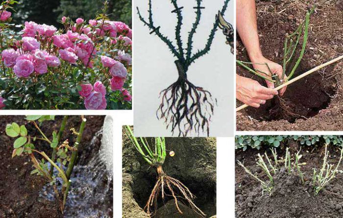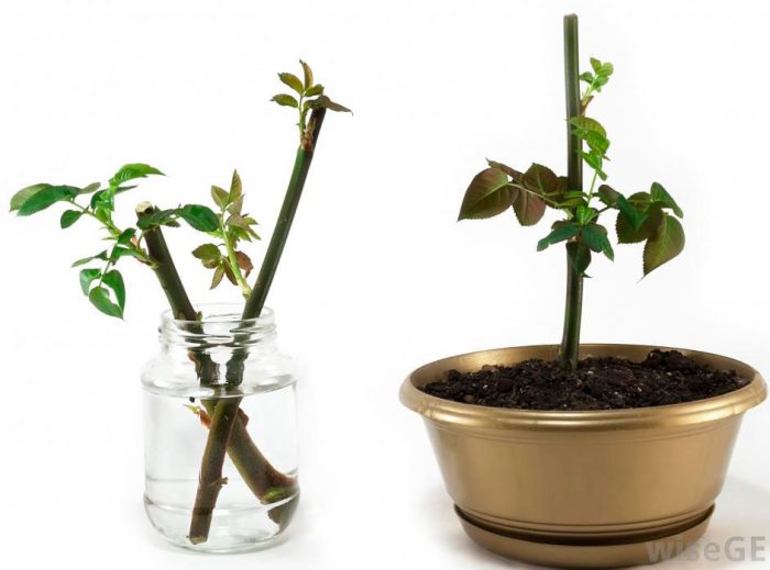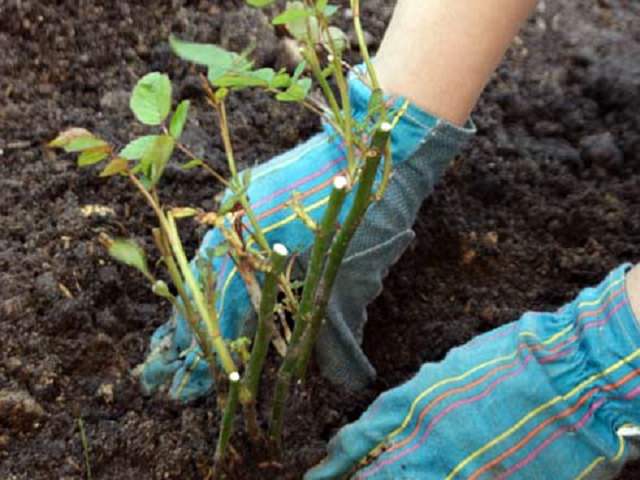 Укорінювати живці треба у відкритому грунті. Для цього їх садять в затіненому місці у підготовлену канаву, наповнену піском (товщина шару піску 15 сантиметрів). Між живцями витримується відстань від 15 до 30 сантиметрів. Біля черешка треба ущільнити грунт, потім провести полив і накрити все плівкою. У вас повинно вийти подобу мініатюрної теплички. Можна виконати в укритті маленькі дірочки, для того щоб до трояндам надходив свіже повітря або потрібно систематично відкривати його для провітрювання. Забезпечте растеньицам своєчасний полив, підживлення, прополку і розпушування субстрату. Утворюються бутончики треба обривати, так як вони послаблюють рослинка. На зимівлю дані троянди треба накрити утеплювачем, складеним в 2 шари, а поверх постелити поліетиленову плівку. З настанням весни утеплювач потрібно видалити, і поступово треба привчати рослинки до зовнішньої середовищі. Для цього треба відсунути укриття. Пересадити підріс держак на постійне місце в саду можна буде лише на 3-й рік життя.