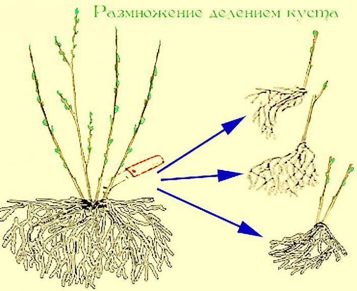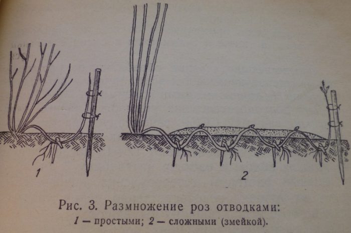Відводки можна отримати і від щеплених і від кореневласних кущів. Для цього вам знадобляться стебла, що ростуть біля кореневої шийки. На початку весни потрібно на даному стеблі зробити кільцевий надріз. Потім його притискають до грунту і кладуть в заздалегідь прокопанную не дуже глибоку канаву. Зафіксуйте стебло посередині гачком або дужкою з дроту і закидайте субстратом, але при цьому верхівка повинна опинитися на поверхні грунту. Поряд з верхівкою застроміть кілочок і перев'яжіть її так, щоб вона дивилася вгору. Не забувайте в літній час поливати грунт над відводки. Відділення отводка слід провести лише з настанням наступного весняного періоду.