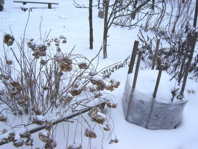 На ділянці треба розмістити приманки для гризунів з отрутою. Після того як з'являться замети, снігом слід закидати накриті кущики троянди. Накриті утеплювачем кущики потрібно під час відлиги провітрювати.