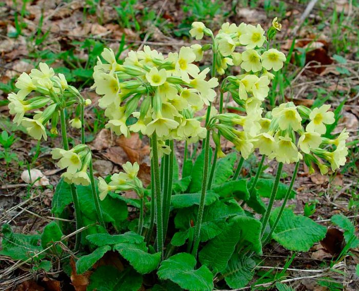 Родина Карпати, південні та північні області Західної Європи. Це багаторічна рослина має овальні листові пластини з дрібнозубчастою кромкою. Їх довжина близько 5-20 сантиметрів, а ширина ― 2-7 сантиметрів. У них спостерігається різке звуження до черешка. На їх лицьовій поверхні жилки є вдавленими, а на виворітній ― опуклими. Суцвіття у вигляді парасольок складаються з 5-15 запашних квіточок, які мають двосантиметровий діаметр і пофарбованих у блідо-жовтий колір, при цьому на підставі пелюсток є цятки насичено-жовтого забарвлення. Висота злегка опушенного квітконосу близько 10-35 сантиметрів. Цвітіння починається в квітні і триває від 50 до 60 діб. Є гібриди, що володіють великими квіточками, пофарбованими в білий, червоний, бузковий, кремовий, жовтий колір. Вони можуть бути одноколірними, так і мати вічко або облямівку.