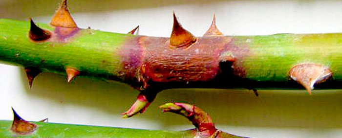 Ця грибкова хвороба, яка вважається опіком кори або рак. Побачити, що рослина хворе, можна у весняний час, після того як буде прибрано укриття. На поверхні кори можна буде побачити цятки коричнево-червоного кольору, які з часом стануть чорними і перетворяться в кільця навколо стебла. Дані стебла слід негайно зрізати, при цьому захопивши частину неураженої тканини, і знищити, щоб не допустити поширення хвороби. У профілактичних цілях в осінній час азотне добриво треба поміняти на калійне, що зробить тканини троянд міцніше. А ще при відлизі необхідно обов'язково провітрювати рослини, піднімаючи укриття.