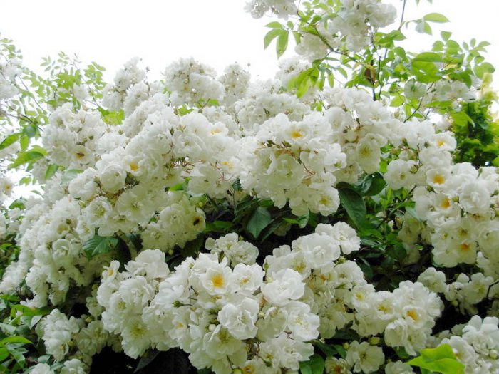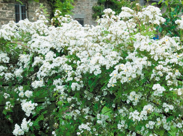 У висоту такий сильнорослий сорт може досягати 800 см при цьому крона має ширину до 300 см. Насичено-зелені листочки майже не видно з-за безлічі кремово-білих квіточок, діаметр яких дорівнює 4-5 сантиметрам. Вони пахнуть мускусом. Необхідно багато вільного місця і надійна опора. Не боїться морозу.