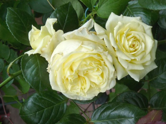 Для того щоб зафіксувати стебла на опорі, необхідно скористатися шпагатом з пластику. Заборонено використовувати дріт для цих цілей, навіть обмотану тканиною або аркушем паперу. Втеча потрібно зафіксувати на опорі надійно, але так, щоб кріпильний матеріал його не пошкодила. Необхідно проводити систематичний огляд рослин на предмет цілісності кріпильних матеріалів. Справа в тому, що під вагою самого рослини або від поривів вітру шпагат може порватися, і в цьому випадку є ризик отримання трояндою значних пошкоджень. Відступите від 30 до 50 сантиметрів від кущика і потім вкопати опору в грунт.