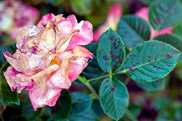 Для троянд велику небезпеку становлять такі захворювання, як: бактеріальний рак, сіра гниль, кониотириум, борошниста роса, а також чорна плямистість.