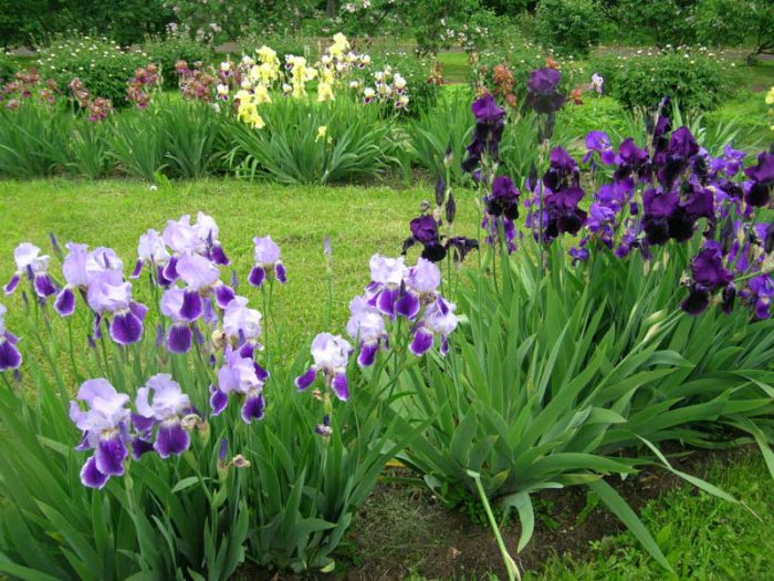 У тому випадку, якщо розсадження в даному році не передбачається, то рекомендується видалити квітконоси після того, як рослина відцвіте. Якщо починається пожовтіння листових пластин, їх рекомендується обрізати, зробивши напівкруглу форму кінчика. Так, іриси так само залишаться гарною прикрасою саду і встигнуть до зими набратися необхідних поживних речовин, а також сил. При теплому осінньому періоді часто трапляється вторинне цвітіння. Після того як листові пластини стануть пожухлими, їх необхідно обрізати, залишивши лише 10-15 сантиметрів. Обрізки треба знищити (спалити), так як на їх поверхні можуть перебувати хвороботворні мікроорганізми, а також яйця шкідливих комах.