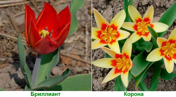 Цвітіння дуже ранній. Кущики у висоту досягають від 15 до 25 сантиметрів. Подовжені, великі квіточки після розкриття мають форму зірки. Окрас різний, але найчастіше зустрічаються двокольорові сорту. На листі є плями або смужки пурпурного відтінку. Сорти: «Діамант», «Леді Роуз Оранж Бій», «Корона».
