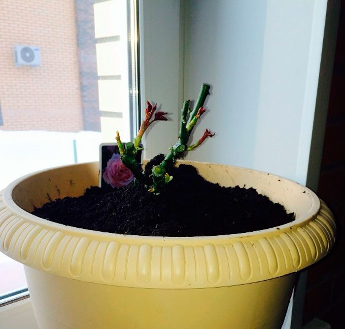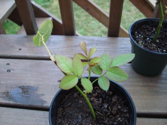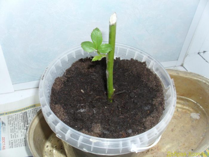 Після того як посаджений держак дасть корінці, добре зміцніє і рушить в зростання, його можна починати привчати до свіжого повітря. Але при цьому слід врахувати, що робити це потрібно поступово. Так, для цього треба щодня на деякий час відсунути пакет. Така рослинка цілком можна пересадити в теплу пору року у відкритий грунт. Проте до цієї процедури потрібно підійти з усією відповідальністю. Слід пам'ятати, що в першу добу після виробленої пересадки таку троянду треба добре зволожувати. Зверніть увагу, що після поливу грунт не повинна бути мокрою, так як в цьому випадку на коренях може досить швидко розвинутися гниль і квітка загине. Треба намагатися, щоб субстрат постійно був злегка зволоженим, для цього квітку потрібно поливати досить часто, але при цьому використовувати не дуже великий об'єм води. Не забувайте систематично підгодовувати троянду, для цього чудово підходять як мінеральні, так і органічні добрива.