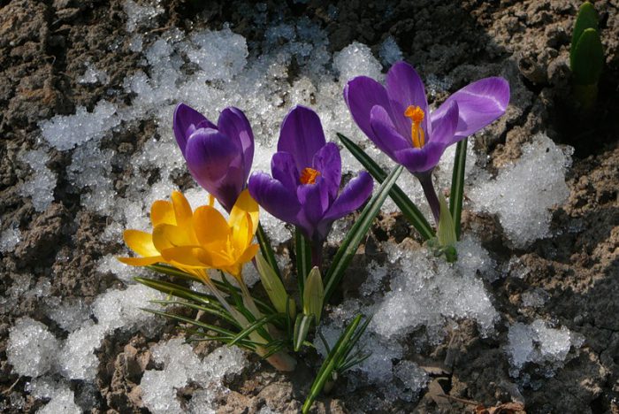 Розкриття таких ніжних квіточок відбувається разом з пролісками. Вони розпускаються на самому початку весни і виглядають дуже ефектно і свіжо. А щоб домогтися ще більшої ефектності, поруч можна посадити такі квіти різних забарвлень. Крокуси рекомендується саджати під кущами і деревами, на відкритому місці, посеред газону або в контейнері.