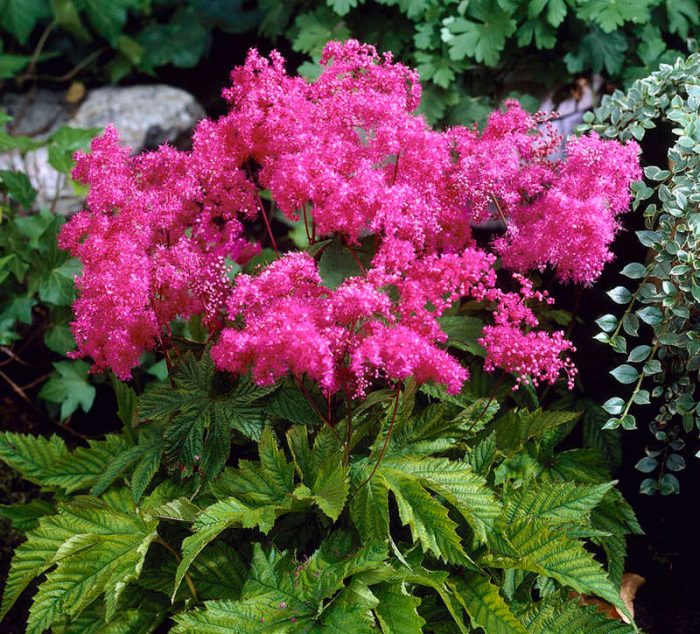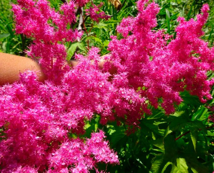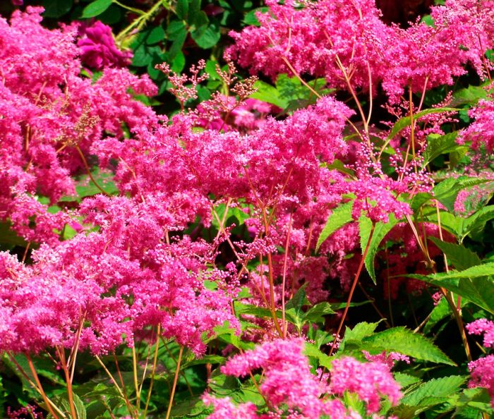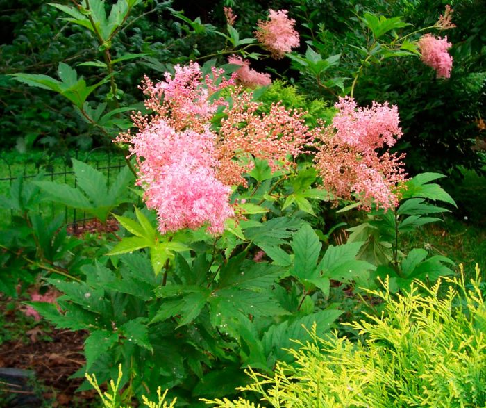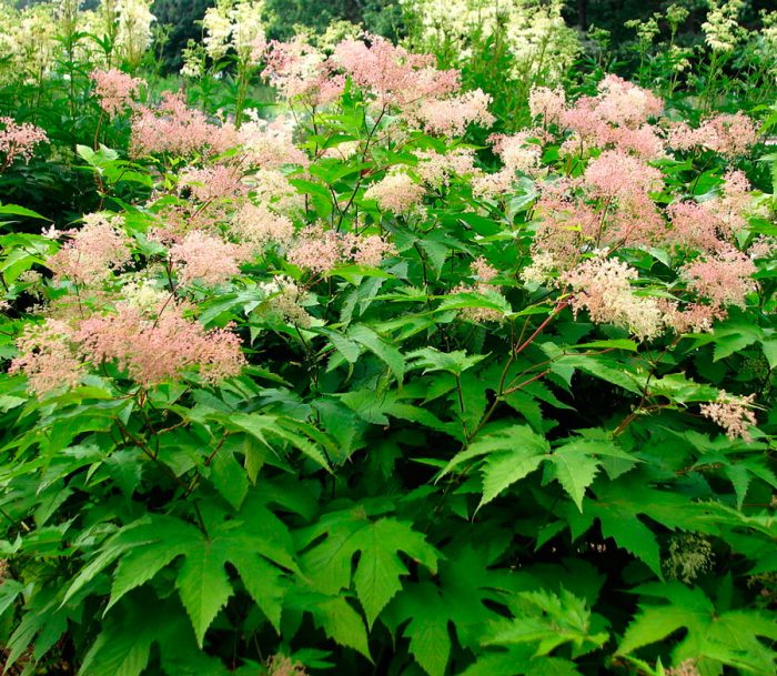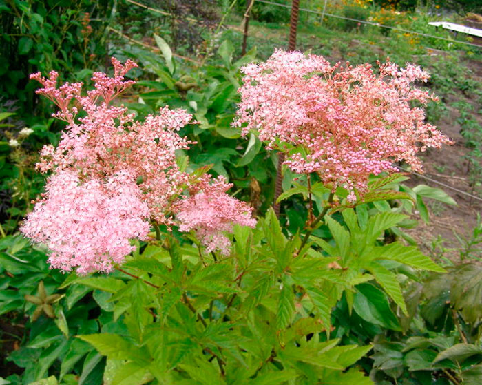 Цей сильнорослий багаторічник формує великі зарості. Зелені великі перисті листові пластини виростають на пагонах, які у висоту можуть доходити до 150-250 див. Великі пишні суцвіття зібрані з рожевих або маленьких рожевих квіток. По закінченню цвітіння формуються привабливі плоди малинового відтінку. Цвітіння триває від 30 до 45 діб і спостерігається в липні та серпні. Відмінно росте на добре освітлених відкритих ділянках, а також в тіні великих чагарників і дерев. При дуже поганому освітленні цвітіння може припинитися.
