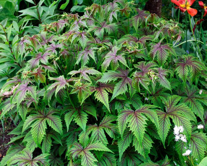 Даний сорт хороший тим, що він має не тільки ефектними квітками, але і дуже красивим листям. У висоту кущ може досягати від 0,7 до 0,8 метрів, а в діаметрі ― до півметра. Пальчасті листки забарвлені в зеленуватий відтінок і мають зубчастої кромкою. Даний сорт відрізняється від інших тим, що прожилки і серединка у його листя пофарбовані у фіолетовий або темно-бурий відтінок. Довгі тугі волотисті суцвіття складаються з дуже маленьких квіточок рожевого відтінку. Цвіте рослина з липня по вересень. Однак воно зберігає свою високу декоративність протягом усього сезону.
