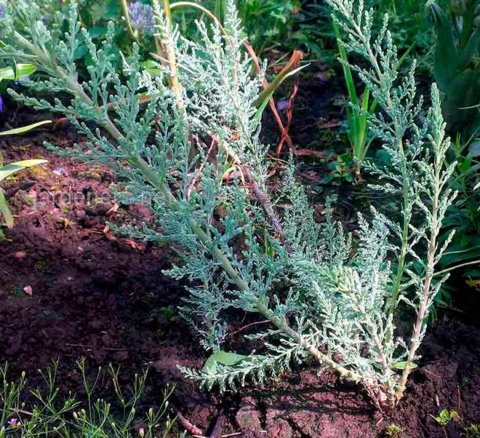 Розгалужені пагони цього чагарнику пофарбовані в буро-жовтий або блідо-червоний відтінок, а прикрашають їх дуже маленькі листові пластини, що представляють собою лусочки. У помірному кліматі висота низьких розлогих кущів може доходити до 100-150 див. Однак іноді зустрічаються дикорослі примірники, висота яких близько чотирьох метрів. У діаметрі чагарник може досягати близько півтора метрів.