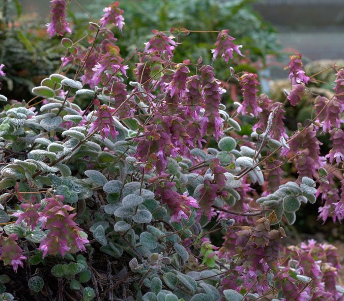 У середньому кущ заввишки сягає від 20 до 30 сантиметрів, але в деяких випадках багаторічник може мати висоту до метра. На жорстких стеблах красуються листові пластини з опушенням сріблястого кольору. Їх форма овальна, практично кругла. Дуже маленькі рожеві квітки зібрані в суцвіття, які прикриті рожево-більш великими зеленими прицвітниками. Формуються вони на гнучкому квітконосі і зовні дуже схожі з шишечками хмелю. У цій різновиди сік володіє потужним антибактеріальним ефектом. При цьому з часів Гіппократа його використовують при болях у шлунку.