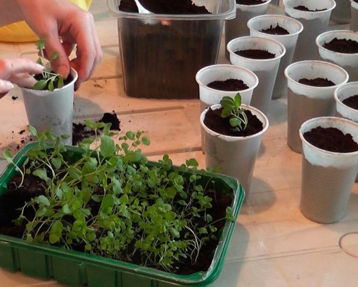 Распикировать сіянці за індивідуальними ємкостей можна буде тільки після того, як у них сформується по дві або три справжні листові пластини. Вчасно розсаджені кущики зможуть підрости і добре зміцніти до того моменту, як ви зберетеся висаджувати їх на грядку. Для пікіровки при бажанні можна використовувати торф'яні горщики. При висадці розсади кореневу систему з таких горщиків не виймають, а висаджують кущики разом з ними.