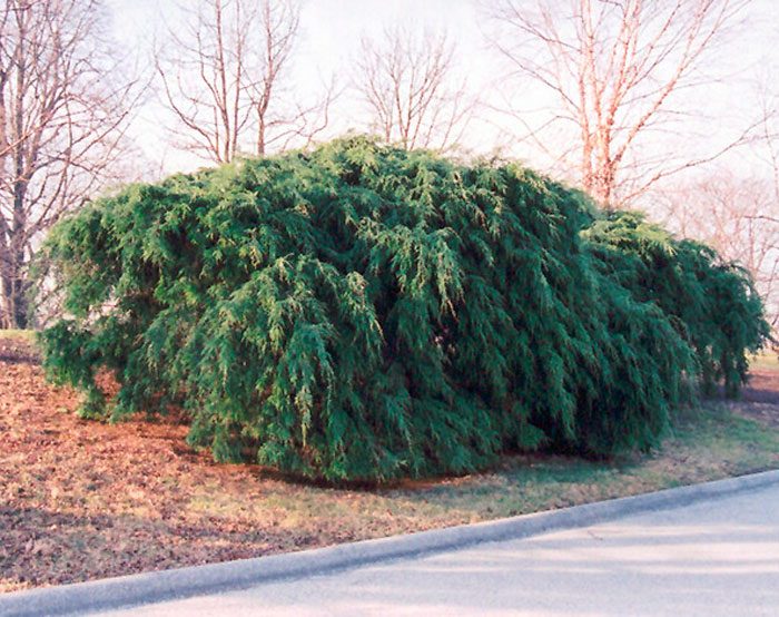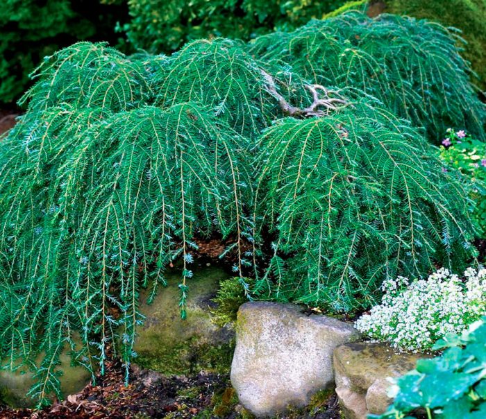 Цей ефектний почвопокровный чагарник виростає невисоким, його каскадні пишні гілки формують крону подушковидной форми. Нова хвоя, яка виросла у весняний час, володіє салатовим забарвленням, при цьому зрілі листя пофарбовані в темно-зелений відтінок.