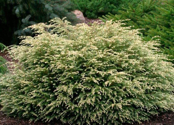 Цей карликовий вариегатный чагарник у висоту може досягати близько 100 см. Форма крони у нього подушкообразная. Верхівки витончених тоненьких пагонів біло-кремові. В осінньо-зимовий період їх відтінок стає більш насиченим, завдяки чому посилюється контраст між зрілими темно-зеленими хвоїнками. Щоб підтримувати високу декоративність куща, фахівці радять, обрізати його кожен рік. Завдяки цьому молоді пагони будуть зростати більш інтенсивно.
