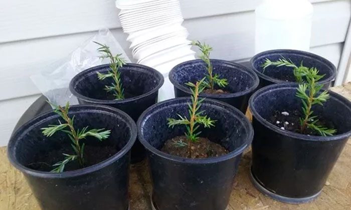 Заготівлю живців проводять в останні тижні літнього періоду. Для цього використовують пагони поточного року, які повинні бути напівздерев'янілими. На верхівці кора повинна бути пофарбована в зелений колір, а біля зрізу ― коричневий. Для того щоб живці швидко вкоренилися, з їх нижньої частини видаляють всі голки і обробляють її порошком, стимулює ріст рослини, який підходить для дерев та деревних чагарників.