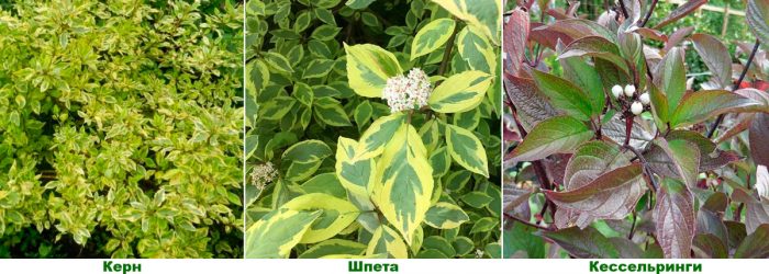 - Айворі Хэйлоу. Крона, що має форму кулі, складається з стебел червоного відтінку і зелених листових пластин, прикрашених кремово-білим широким облямівкою.